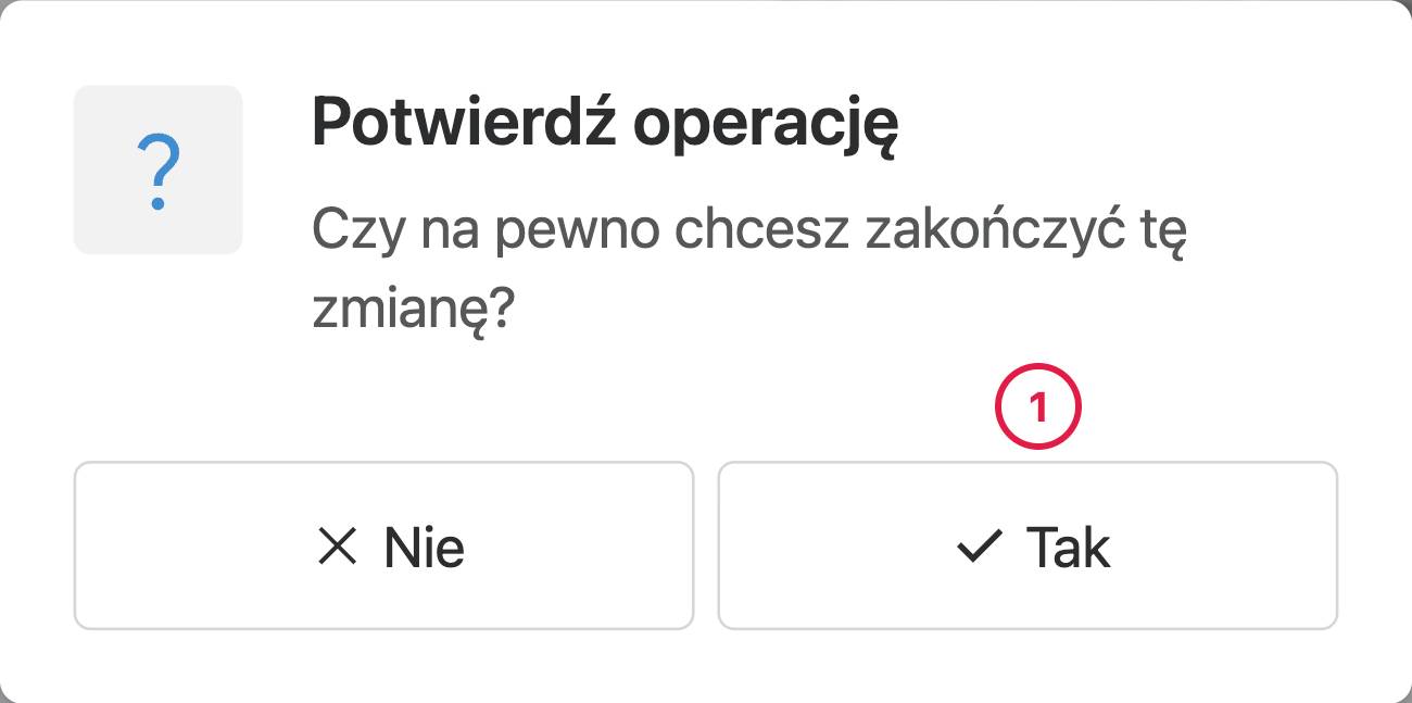 Kliknij w menu głównym aplikacji ikonę Zakończenie zmiany.